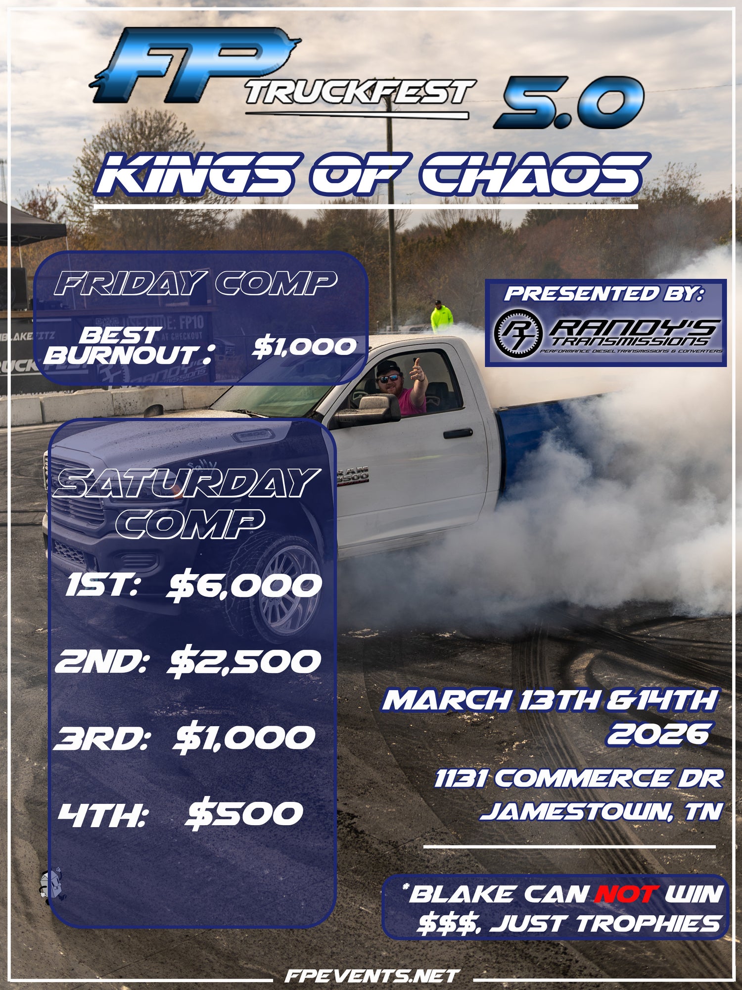 For FP 5.0, our burnout competition has a total of $10,000 in payouts for Pro Class!