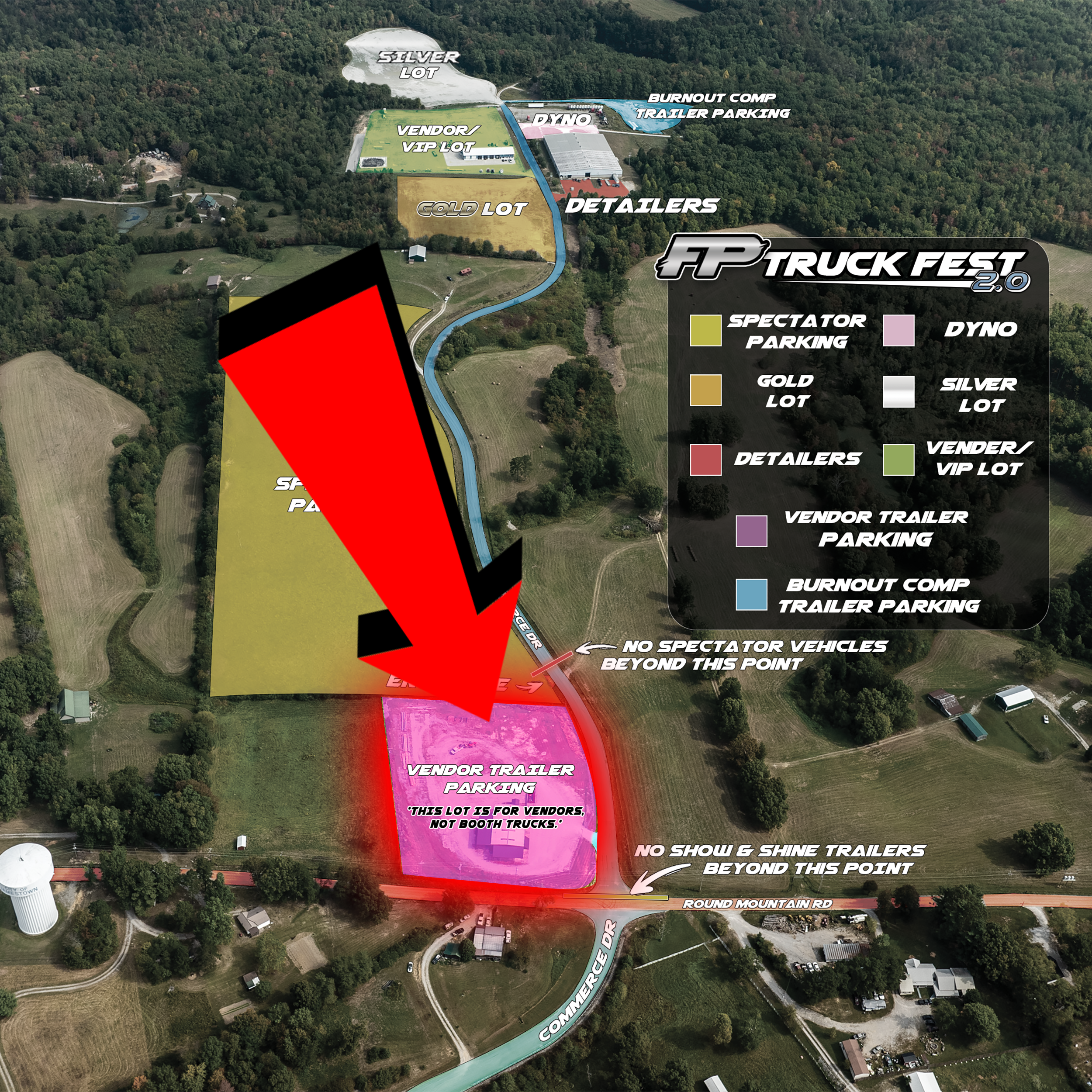 If you have a trailer that won't be at your booth for the show, you will park your trailer here - you can pull any trailers into the gates on setup days.